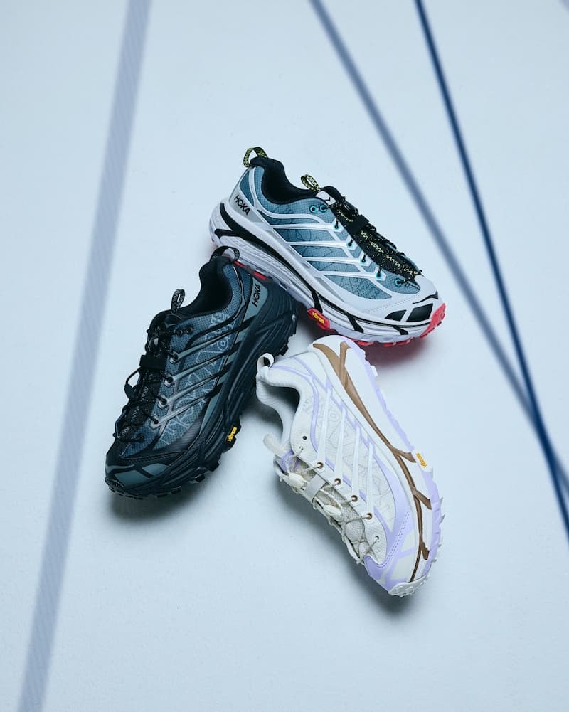 在本次展覽中,HOKA 以其經典越野鞋款 Mafate 為靈魂核心,延伸品牌 2025 年核心共榮精神「Together We Fly Higher」,結合 oqLiq 的服裝語彙,共同描繪身體與城市、自然與時間之間的張力。此次合作不僅象徵兩個品牌對機能與美學的共鳴,更是Mafate Lifestyle 系列首次完整面向大眾的亮相,展現其誕生於留尼汪島峽谷的越野血統與「飛躍、自由」精神,勾勒出系列獨有的流線輪廓。自 2015 年 Mafate Speed 問世以來,HOKA 不斷推進設計邊界,讓越野科技與時尚語彙並行發展。