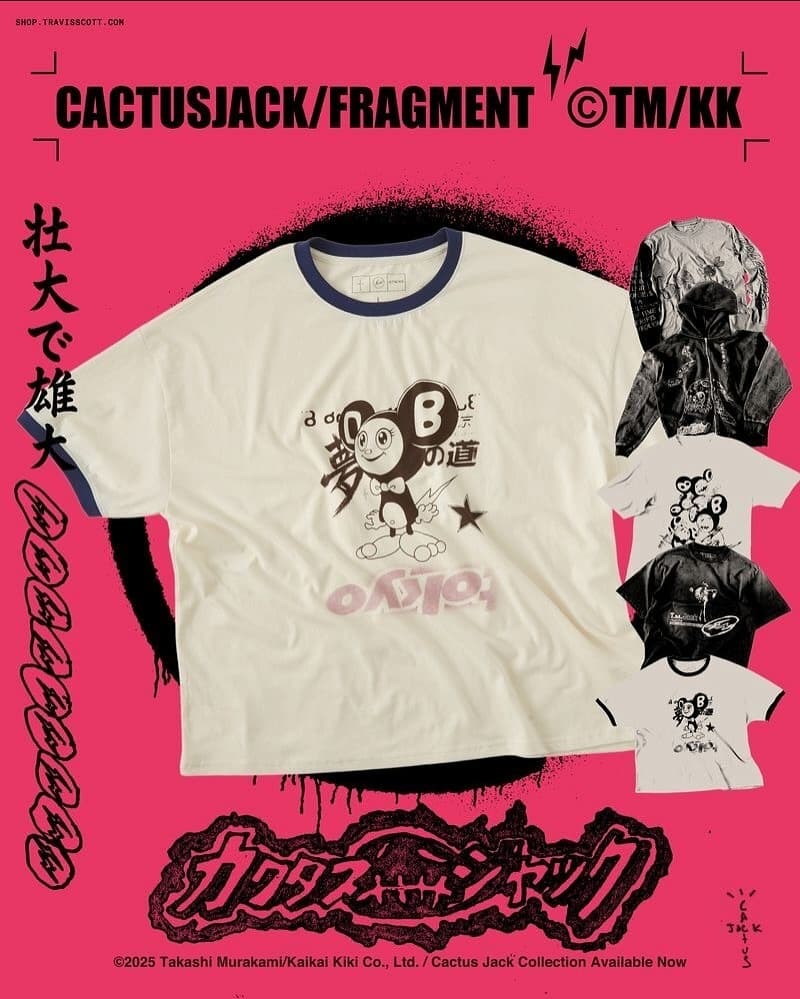Travis Scott 的巡迴站上日本,在街頭文化的聖地釋放出更強烈的文化共鳴感。FRAGMENT 本身就是日本潮流的核心靈魂,而村上隆則是當代藝術最具國際指標性的創作者。Cactus Jack 在這裡串起所有能量,又打造了一次令人真正印象深刻的文化時刻,如果大家想要購買,歡迎前往 travisscott.com 選購。