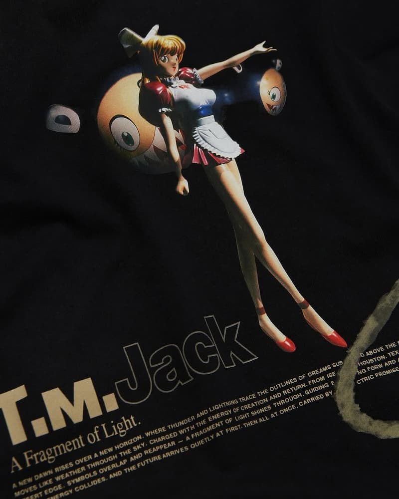 這次系列以 Cactus Jack 標誌性的視覺樣貌作為基底,服飾都以做舊和斑駁感呈現,同時結合村上隆招牌設計元素,包含知名 IP 以及類似於《KIDS SEE GHOST》專輯風格的手繪內容,另外也有與 CACTUS JACK Logo 結合的「微笑花朵」抱枕。除了 CJ x 村上隆的兩方聯名以外,另外則是有藤原浩 FRAGMENT 閃電標誌加入的三方聯名限定系列了,在視覺上更有辨識度。