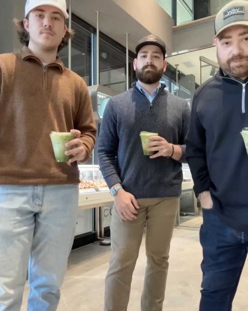 而飲料選擇「抹茶拿鐵(matcha latte)」更讓這個轉變變得完整。如果說半拉鍊毛衣代表的是「外在的成熟感」,那麼抹茶就是「生活方式的升級象徵」。在 2024~2025 年的美國社群文化裡,抹茶被視為健康、柔和、非侵略性、懂生活的表現,是一種對比咖啡文化的低咖啡因清醒感。因此迷因裡才會出現那句:「We don’t do coffee no more. We do matcha.」表面上看起來是在搞笑,但其實背後指向的是年輕男性如何藉由衣物、飲品與品味選擇,重新塑造成年後的自己。這樣的穿搭與飲品組合,看似輕鬆有趣,卻深刻觸碰到男性身份認同的轉折。從街頭走向都會、從少年進化成男人、從充滿衝勁的 Nike Tech 走向更溫和、細緻、講究生活的 quarter-zip 和 matcha。迷因的力量就在於它把這種轉變講得既誇張、又準確,讓所有人看得懂,也看見了自己。