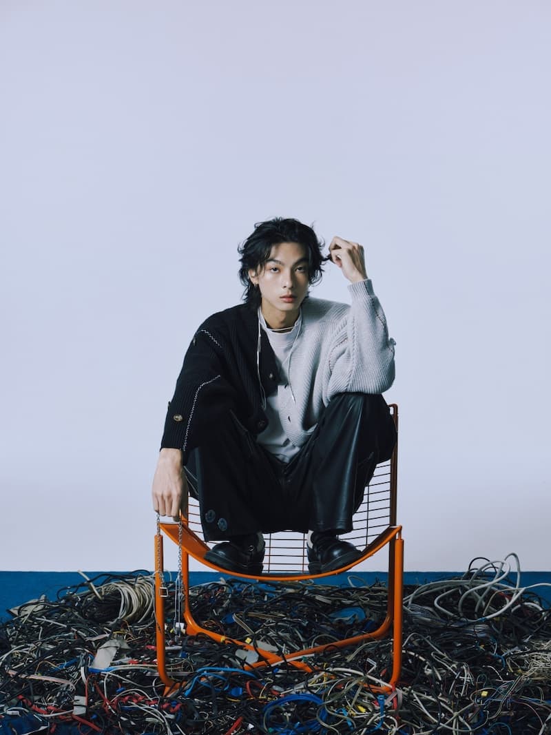 Stain Trim Pocket Shirt 襯衫,口袋以電繡描繪「原子筆滲水」的暈染痕跡,像徵那些無法預期而留下的小意外。Ctrl C, Ctrl V Knit Cardigan 針織衫,可正反兩穿的結構設計,延伸「複製與重組」概念,在對比與錯位中,呈現不完美的平衡。On Duty Faux-Leather Jacket/Pants,以人造皮革打造雙品牌首次嘗試的套裝調性,流暢的剪裁之下,藏著細微破壞的暗湧與張力。