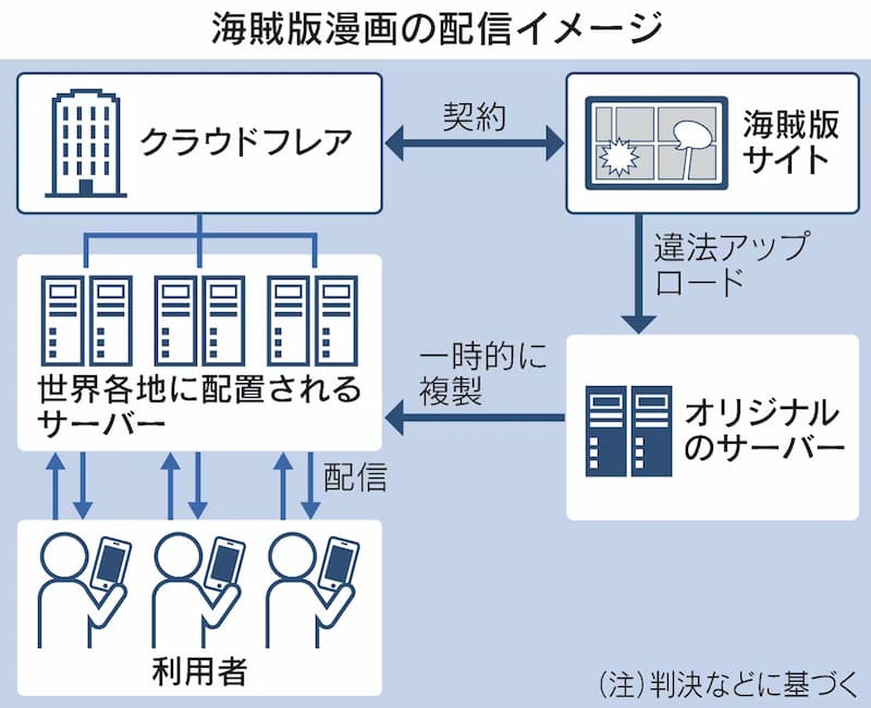 本案起源於日本四大出版社對盜版漫畫氾濫的長期控訴。他們指出,兩個大型盜版網站利用 Cloudflare 的 CDN 服務(Content Delivery Network 內容傳遞網路),以極高頻寬高速傳輸近 4,000 部漫畫作品,包括《航海王》、《進擊的巨人》等重量級作品在內,月流量更突破 3 億次。由於 CDN 會在各地節點自動複製內容,這些盜版站的圖像在日本當地能被快速讀取,對出版社的合法販售造成巨大衝擊。出版社自 2020 年開始便多次要求 Cloudflare 停止協助這些站點,但 Cloudflare 並未中斷服務。最終,四大出版社決定聯手提告,認為 Cloudflare 的基礎建設使盜版站能在匿名情況下穩定營運,讓非法內容更難被阻擋。