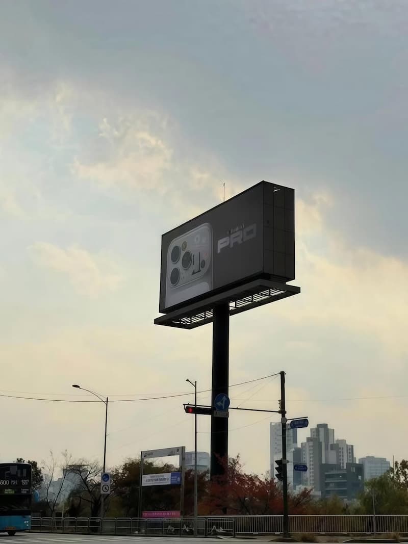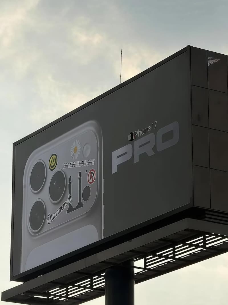GD 限動出現的這塊看板被拍到的地點位在首爾市中心,時間是 11 月 20 日左右。原本只是一張標準版的 iPhone 17 Pro 廣告看板,強調三顆 4,800 萬畫素後鏡頭等新賣點,但在 GD 限動裡,我們看到的是一支鏡頭周圍佈滿雛菊貼紙、《Übermensch》字樣的裝飾,旁邊再補上 PEACEMINUSONE 標誌,整體視覺就像把手機當成他個人世界觀的畫布。