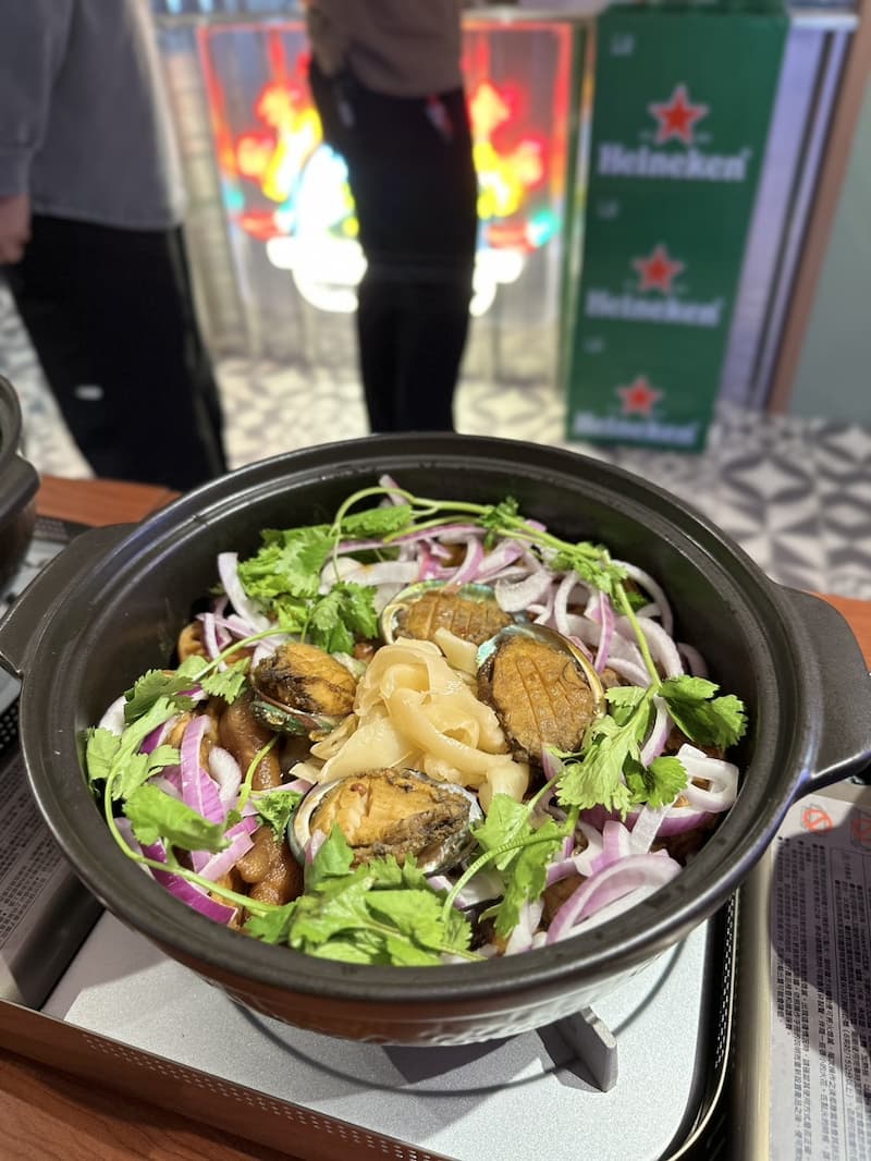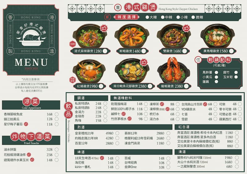 《梁香好》把正宗港式乾炒功夫端上桌,主打「一鍋兩吃」的奢華系雞煲鍋!菜單一次推出七大鍋底:經典的港式麻辣雞煲、鮮蝦雞煲、廣島蠔雞煲,到紅蟳、南非鮑魚花膠、甚至龍蝦雞煲等超澎湃選項,直接把港式靈魂升到滿格。最人氣的港式麻辣雞煲,以「乾炒麻辣」打底,蒜頭、洋葱、辣醬一路爆到香氣炸開,辣度走「香麻重、辣度穩」路線,堆疊出越吃越上癮的濃厚味。最後再撒上一把香菜,瞬間把層次推高。而雙雞煲則更狂!在招牌鍋底裡加入田雞拌炒,嫩度+Q 彈一次到位,醬汁扒滿滿,根本雙重雞肉控的天堂~想吃澎湃一點的,店內還有紅蟳、龍蝦、南非鮑魚、廣島牡蠣等頂規食材直接下鍋添海味,從入門到奢華一次滿足。