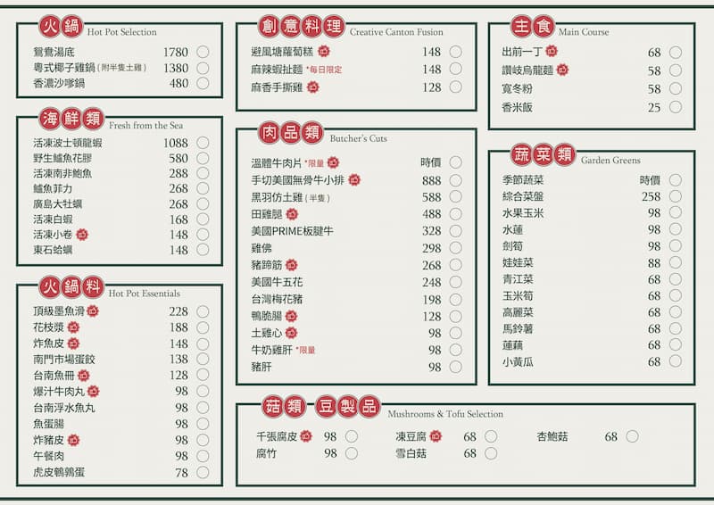 重口味控直接筆記!沙嗲鍋以港式沙爹醬、花生、椰奶與多款辛香料煸香後慢熬,湯頭濃郁到一喝就知道是主角。花生香混奶香、香料辛香一路堆疊,屬於「越滾越香、越煮越濃」的類型,和乾炒雞煲的香氣完美同步,完全是香料派心中的王牌鍋底。
