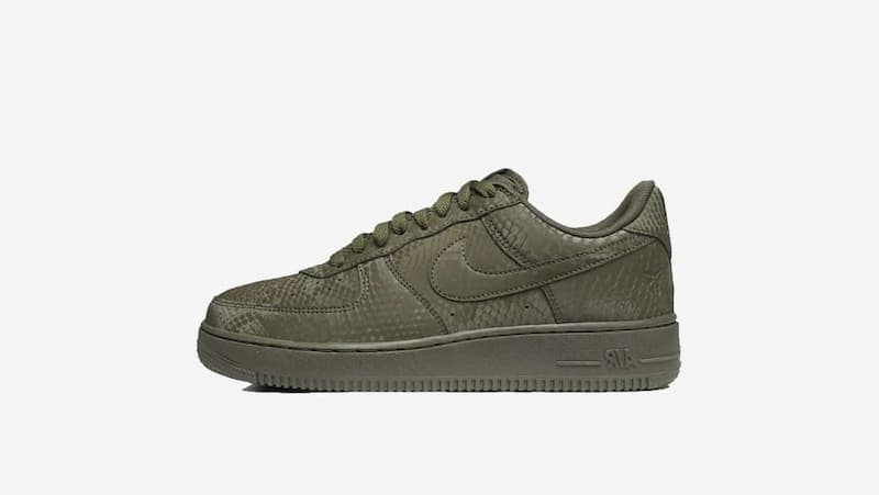 Kobe Bryant x Air Force 1 Low 再度推出全新配色「Cargo Khaki」,鞋面以墨綠色的蛇紋壓紋皮革製成,後跟處刻有 Kobe 標誌性球衣背號「8」以及「24」字樣,向 NBA 已故球星「黑曼巴」Kobe Bryant 的傳奇生涯致敬。
