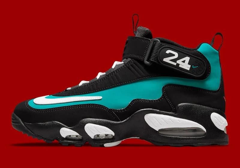 繼 2021 年後,經典鞋款 Nike Air Griffey Max 1 "Freshwater" 再度迎來復刻回歸,紀念 MLB 水手隊名人堂球星小葛瑞菲(Ken Griffey)的傳奇生涯,延續黑、白和淡水綠主要色調,並在鞋舌及後跟處的 Swoosh 標誌注入紅色細節,綁帶上亦有著「24」字樣致敬 Ken Griffey 球衣背號。
