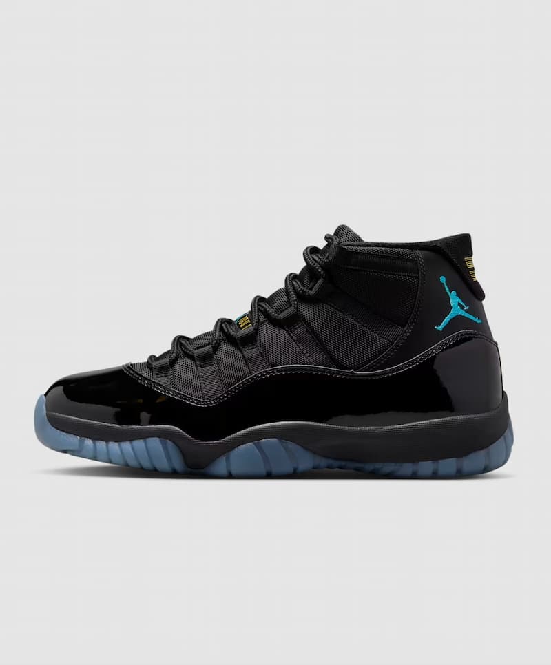 經典喬丹球鞋 Air Jordan 11 Retro "Gamma" 於今年年底迎來復刻回歸,保留 2013 年原版的版型,黑色漆皮鞋面搭配水藍色的 Jumpman Logo 標誌,底部再以冰藍色的半透明橡膠外底完美收尾。