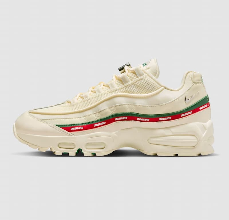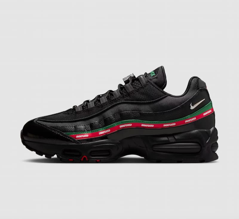 UNDEFEATED 與 Nike 再度攜手發表 UNDEFEATED x Nike Air Max 95 全新聯名款式,共有「黑 Black」與「白 Sail」兩款配色,整體設計採層疊的單色調結構,鞋面透過鬆透網布及耐用尼龍等材質製成,並加上亮澤的漆皮元素,另外還有銀色鞋帶扣與金屬質感的小型 Swoosh,與鞋款的反光元素相互呼應,雙色 UNDEFEATED 品牌標誌則詮釋聯名身份。