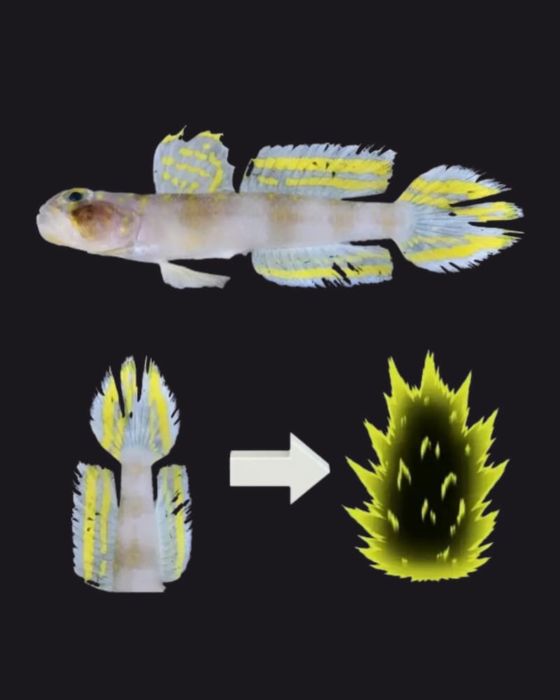 但是為什麼會把這種魚稱作超級賽亞人?原因是因為牠身上金黃色的鰭搭配上鰭的形狀,就好像變身中的超級賽亞人,因此而得名(畢竟也是日本團隊發現的嘛)。研究人員表示,這尾來自石垣島外海、曙暮光帶(約 100~300 公尺深)的新魚種,被釣上來時牠那一身亮黃到近乎發光的花紋,立刻讓大家聯想到鳥山明經典作品《七龍珠》中悟空全身發光的經典變身場景。於是團隊毫不猶豫,直接把這位新朋友命名成 Vanderhorstia Supersaiyan —— 在科學命名的世界裡,這可是會永久保留下來的正式名稱,不是開玩笑的那種。