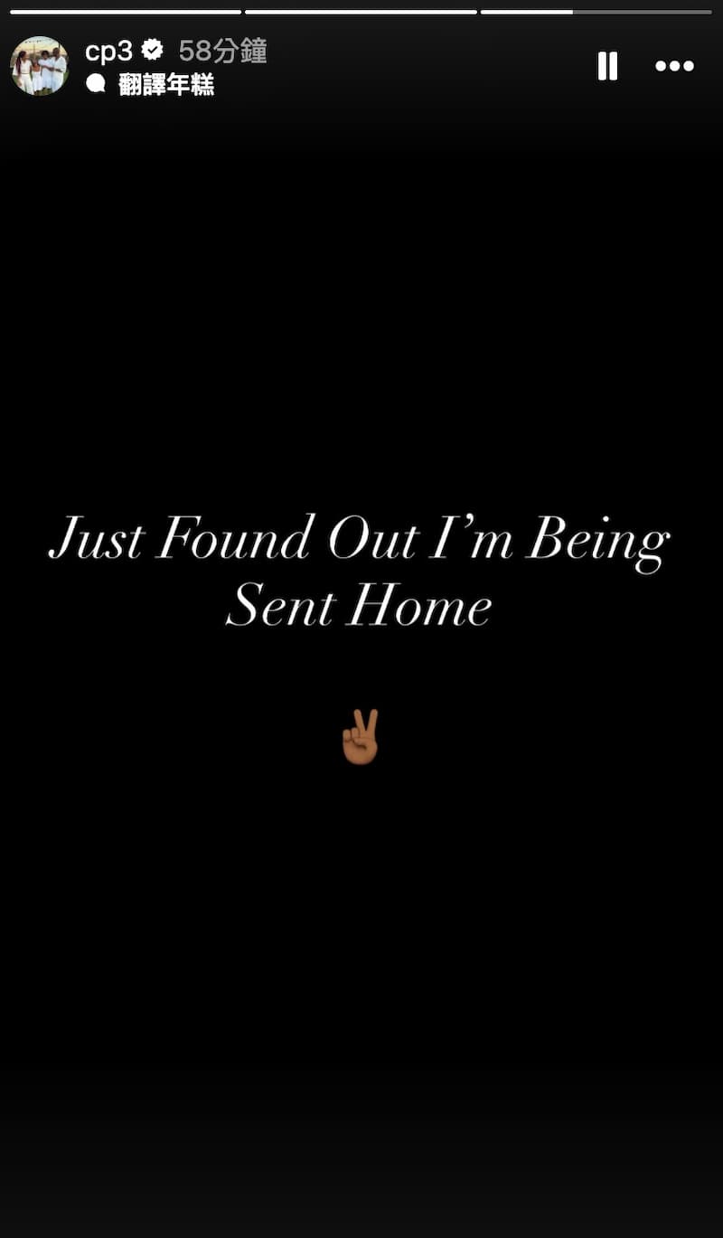 Chris Paul 本季以底薪加入快艇,並宣布這將是他的最後一舞,不過目前為止他的表現也相當慘烈,在未傳有傷勢的情況下,卻幾乎拿不到什麼上場時間,目前總共只出賽 15 場,場均上場 14.2 分鐘攻下 2.6 分 3.3 助攻。目前快艇隊正在客場之旅,消息傳出快艇球團預計會將 Chris Paul 送回家,並隨即離隊解約,Chris Paul 本人稍早也在個人 IG 發佈限動證實此事。倘若接下來也沒有任何球隊與他簽約,也意味著 Chris Paul 將很突然地結束他 21 年的球員生涯。