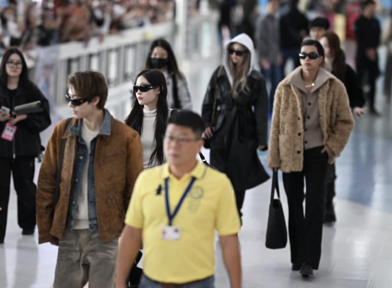 下午 2 點多開始,韓星們陸續現身小港機場大廳。身穿白色上衣搭配寬鬆牛仔褲的男演員秋泳愚率先抵達,神情輕鬆地向粉絲揮手致意;緊接著 ALLDAY PROJECT 五人團體一起現身,女團 MEOVV 也熱情揮手、點頭打招呼,甚至比出臉頰愛心回應粉絲。歌手崔叡娜一身帥氣皮衣外套登場,IVE 師妹團 KiiiKiii 緊跟在後。下午 4 點多,ATEEZ、CRAVITY 等團體也接力走進機場大廳,KISS OF LIFE 與 QWER 等團體則在隨扈人員引領下進場。粉絲們為了搶先看到偶像,有人早上 4 點就到機場卡位,有人 8 點就守候,現場擠滿上百人。一名粉絲興奮表示:「MEOVV 真的跟螢幕上一樣漂亮,她有跟我揮手,應該是在看著我!」另一名粉絲則說:「對到眼的時候手一直抖,連手機都拿不好。」還有粉絲為了 CRAVITY 早上 9 點就到場守候,直呼:「因為很帥」。