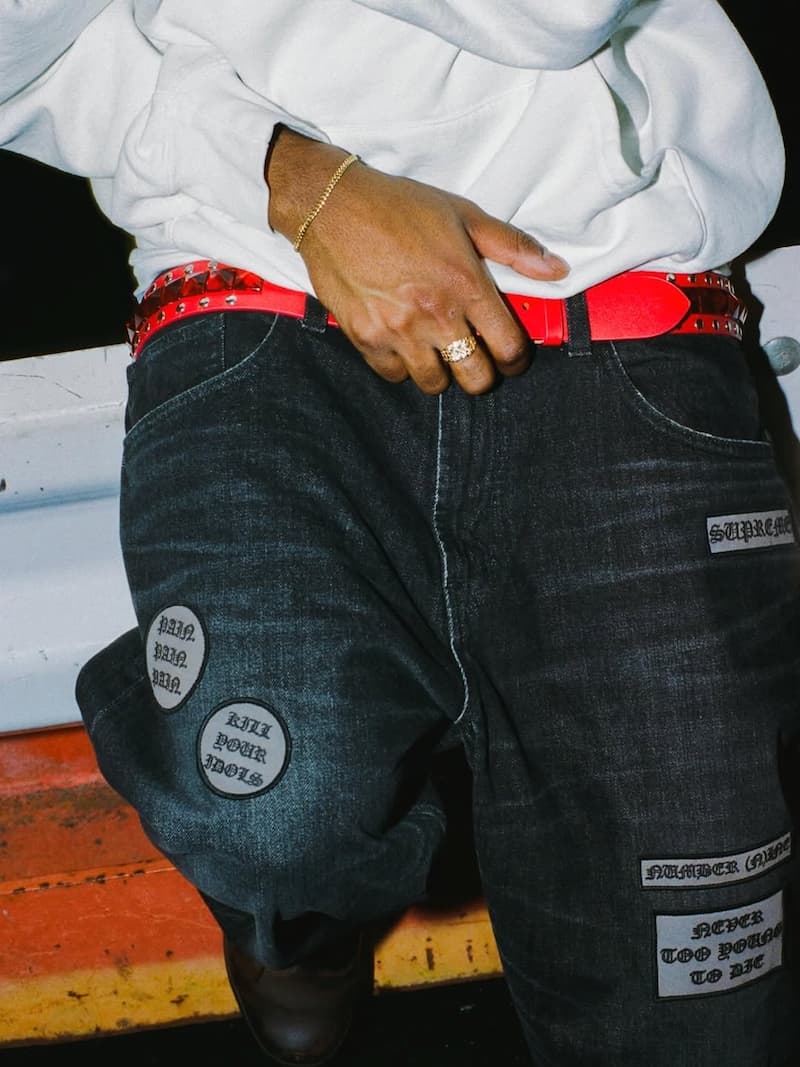 這次合作由 Supreme 與 Number (N)ine 原品牌所屬公司共同主導,系列核心回到 Number (N)ine 早期標誌性的搖滾美學與不羈氣質,而非與宮下貴裕現階段的新品牌線合作。換句話說,本次聯名著重於復刻經典年代的「原始 Number (N)ine DNA」,為當代潮流重新帶回那段陰鬱、反叛又浪漫的設計精神。