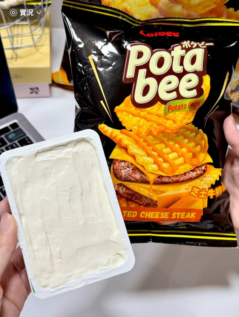 第一個「洋芋片+ Cream cheese」一看就超罪惡!網友分享自己用洋芋片夾上厚厚的 cream cheese,外層酥脆內層滑順,除了有餅乾的香味之外,還有濃濃奶香味,洋芋片則可以根據個人喜好選擇甜或鹹口味,保證吃一口就讓人停不下來!