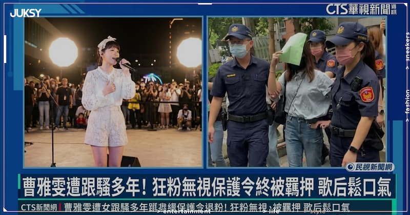 金曲歌后曹雅雯長期遭一名新加坡籍劉姓女子跟蹤騷擾,儘管法院已核發跟騷保護令,這名女粉絲仍不斷出現在曹雅雯的演唱會現場。2025年11月30日,劉女竟大膽坐在衛武營演唱會第一排近距離盯著曹雅雯,讓歌后當場嚇得報警求助。更誇張的是,當時執勤警方未能及時處理,讓曹雅雯在臉書上無奈表示「很失望」。所幸12月3日劉女再度現身另一場公益演唱會時,警方終於將她逮捕,檢方隨即向法院聲請羈押獲准,這起纏擾多年的跟騷案終於告一段落。