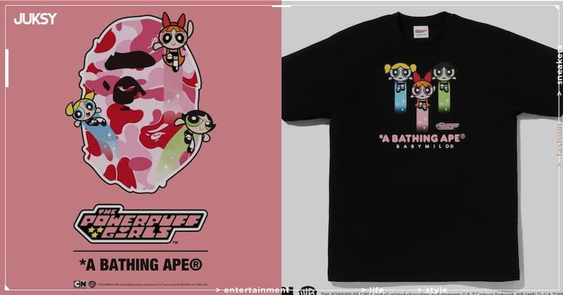 這次合作把角色的活潑魅力與 BAPE® 標誌性的街頭視覺融合,像是把童年貼紙簿直接升級成高級潮流單品。系列主視覺以花花、泡泡、毛毛三人組搭配粉紅 ABCCAMO APE HEAD,亮粉細節不只「少女心」,還藏著一點 Y2K 的反叛感,既可愛又充滿能量。單品部分也堪稱「粉絲失控必收」!