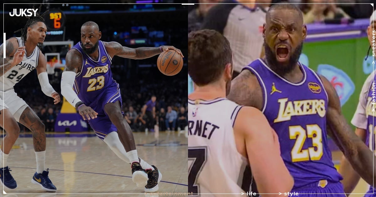 NBA 今日舉行「NBA 盃」賽程,西區方面洛杉磯湖人在主場以 119:132 不敵聖安東尼奧馬刺無緣晉級,不過 40 歲球星「詹皇」詹姆斯(LeBron James)持續表現出色,其中還上演一記氣勢萬鈞的隔人單手暴扣,將 7 呎高的馬刺隊長人科爾內特(Luke Kornet)無情當作海報背景,驚艷全場。