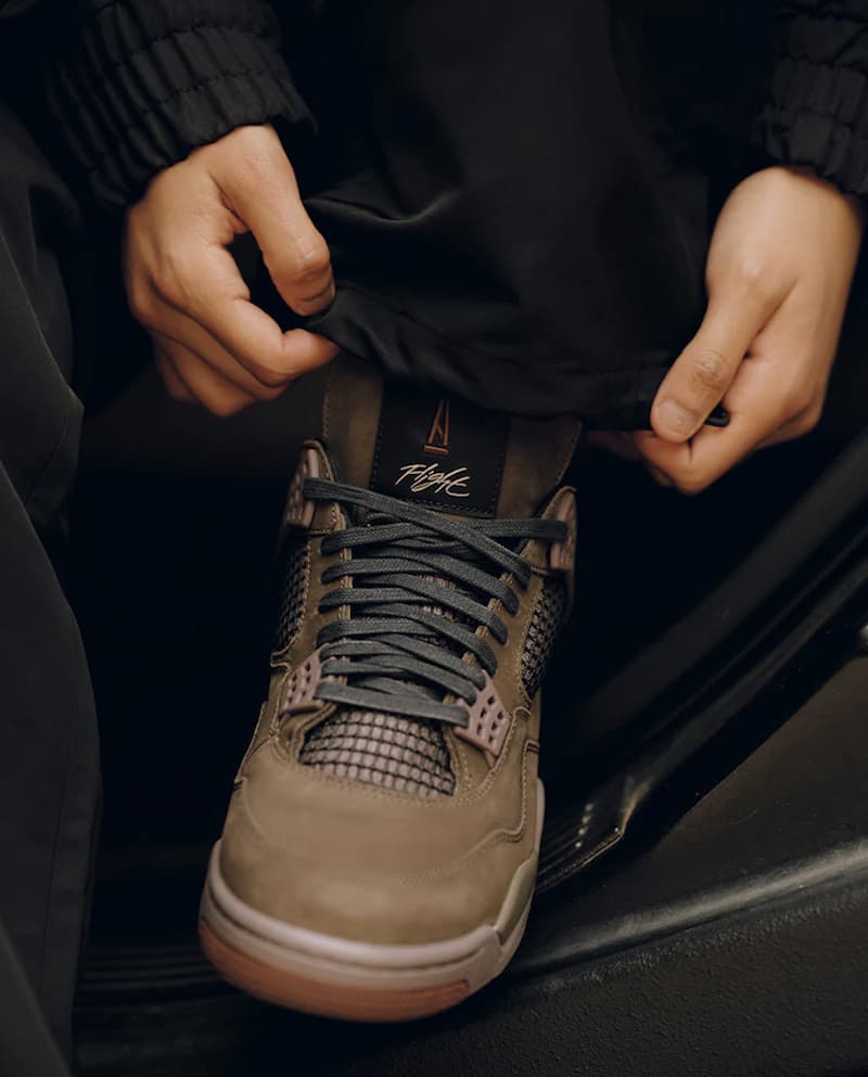 本次 A Ma Maniére x Air Jordan 4「Dark Mocha」隸屬於品牌全新的「Built For This」企劃,並作為「Homecoming」篇章的核心單品,其背後寓意著「慶祝回歸」——向那些經歷無數努力後終於被看見、且得來不易的時刻致敬。以這類沉穩內斂的敘事風格,搭配著 A Ma Maniére 最引以為傲的「材質美學」,完美地體現在鞋款的設計語言上。