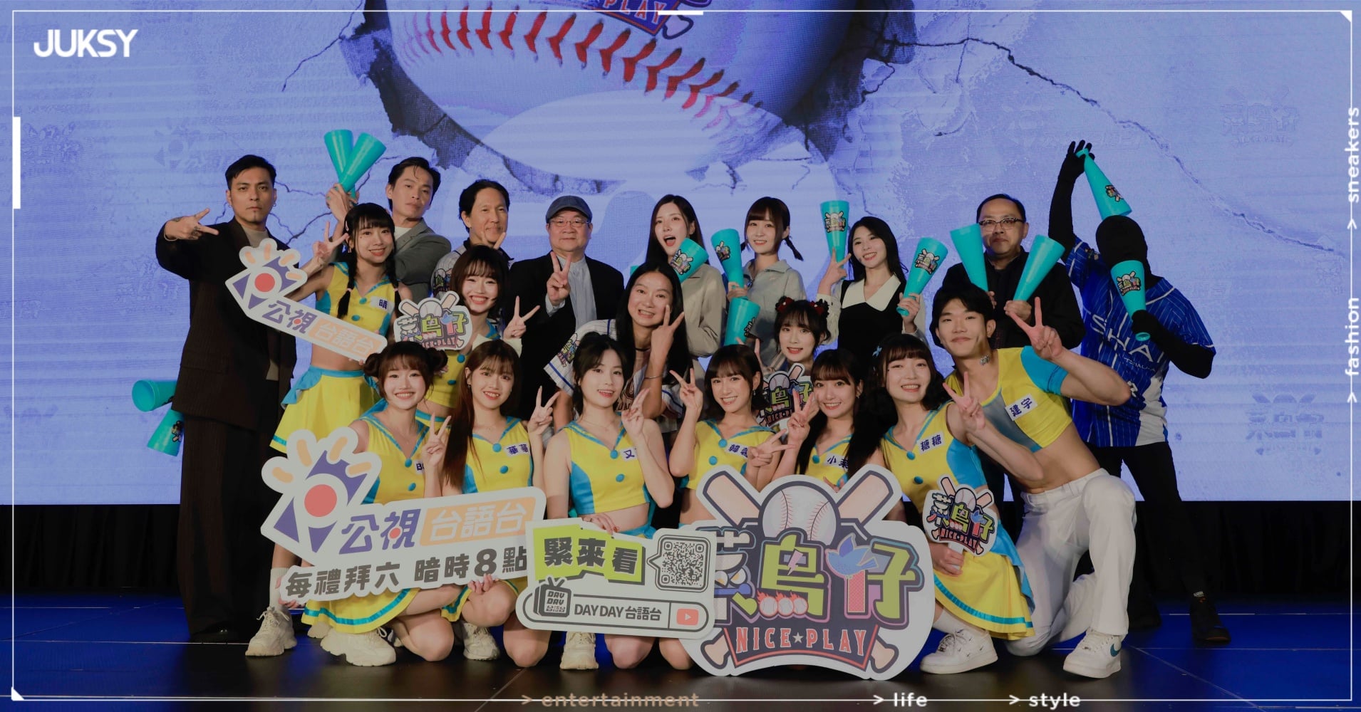 公視台語台《菜鳥仔 NICE PLAY》12 月 13 日強勢回歸,一開場就火力全開!本季從超過 300 位報名者中殺出 10 位全新菜鳥,將迎戰超高壓「台語 × 舞蹈 × 應援養成」實境挑戰,從舞台爆發力、台語口條到鏡頭魅力全面升級洗禮,只為挺進最終任務—踏上真正的棒球場開場舞台。今日(12/11)台語台舉辦開播記者會,參演節目的「老鳥前輩」們首度同台亮相,包括升格掌舵整季的總導演嘎嘎(潘俊佳)、棚內主持人黃鐙輝、人氣鏡頭魅力導師「台妹小南」南珉貞、舞蹈總指導筱晴與應援台關主希希都出席力挺,為 10 隻菜鳥仔惠雯、辰茉綝(小茉)、韓馨、建宇、糖糖、又贏、華華、豫晴(晴)、露娜、波波加油應援,現場更帶來精彩的啦啦隊表演,引爆全場焦點。全新節目《菜鳥仔 NICE PLAY》12 月 13 日起,每週六晚間 8 點,公視台語台連播兩集;電視播出後一小時可在「公視 」YouTube「DAYDAY 台語台」官方頻道線上觀看。