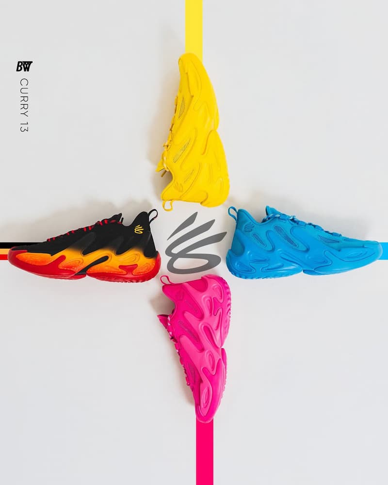 如今根據網路上流傳的最新照片,似乎佐證了 Stephen Curry 當時穿的神秘戰靴就是 Curry 13 本人,可以看到這款新作在設計上採用了不少創新元素,包括鞋面顯眼的波浪線條刻紋,似乎呼應 Curry「浪花兄弟」的特質,另外色彩上更是採用大膽的鮮豔色調,無論是藍、黃與粉紅的純色風格,還是黑與橙的撞色搭配,目前率先釋出的這 4 款配色無疑都相當搶眼。至於鞋款科技方面還無法清楚做出推斷,或許就等接下來官方公布的資訊了。