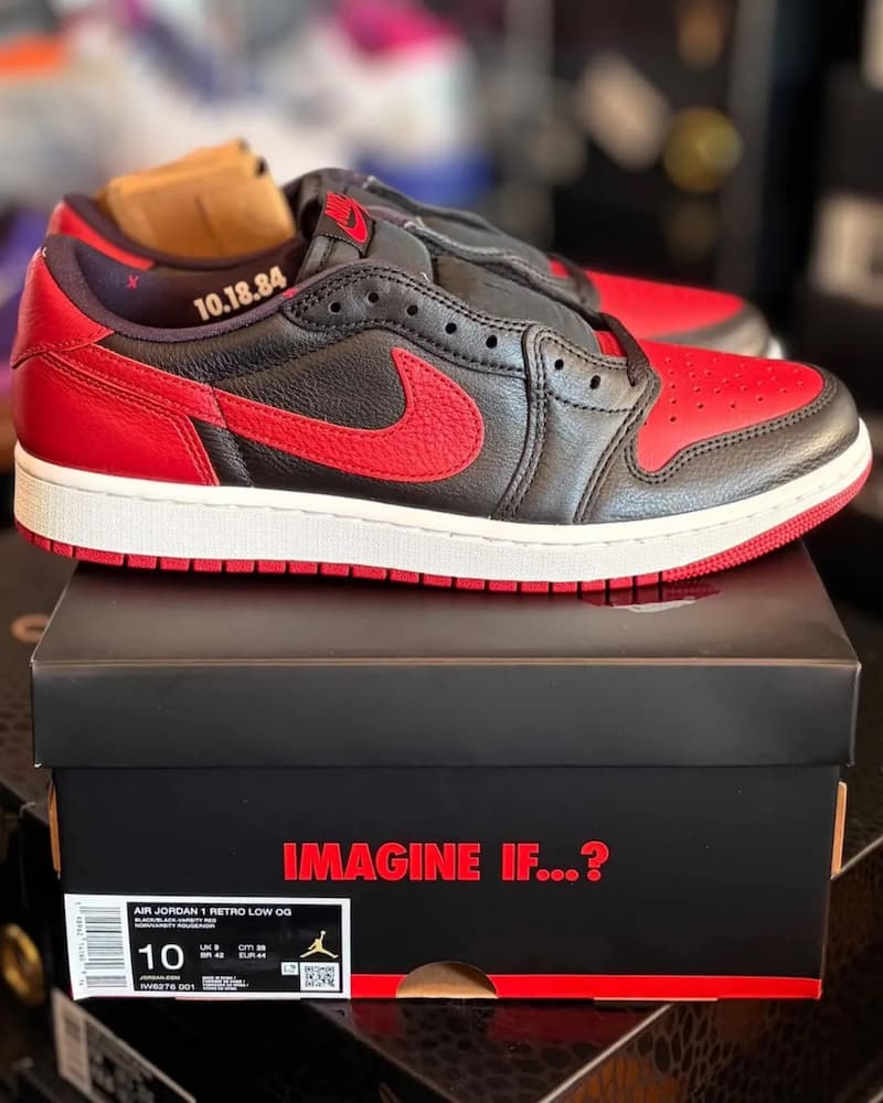 整體配色依舊以最具代表性的黑紅 "Bred" 為核心,鞋型部分沿用了去年芝加哥低筒的鞋型剪裁,包括放大的 Swoosh 與較高品質的皮革用料,讓整雙鞋在強調復古的同時也兼顧了日常穿搭實用性。